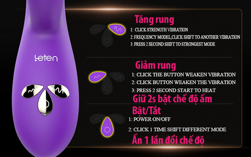Những miêu tả đó cũng chưa tạo nên một Rung cầm tay Leten đến như vậy, đặc điểm nổi trội nhất là ở tạo nhiệt, có thể tạo ra nhiệt độ ấm áp không phải máy Rung nào cũng có thể, Rung cầm tay Leten tạo ra nhiệt ở nhiệt độ 40*c, như một dương vật đang cương cứng rất muốn vào.